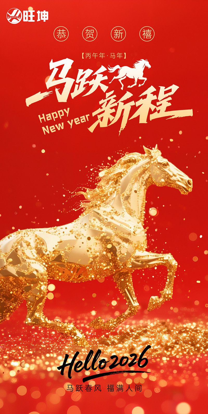 “马跃新程,旺坤同行 —— 旺坤管业恭祝 2026 元旦快乐”